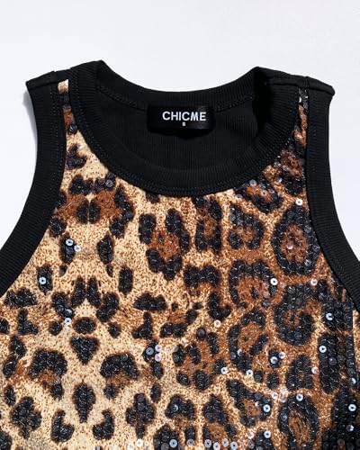 CHICME Women’s Blingbling Sequin Tops Sleeveless Tank Tops Slim Fitted Shirt