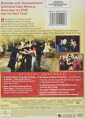 Nominated for 5 Academy Awards, including Best Music, this romantic comedy tells the story of a young Chinese girl who travels to the United States as part of an arranged marriage and discovers a new and modern world. Featuring an all-new digitally remastered picture, 5.1 Surround Sound, never-before-seen bonus materials, and timeless musical numbers such as “I Enjoy Being a Girl,” Flower Drum Song is a lavish song and dance extravaganza.
