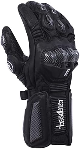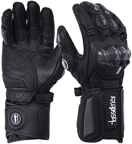 Harssidanzar Leather Motorbike Gloves For Men and Women,TouchScreen Powersports Carbon Fiber Knuckle Protection Motorcycles Gloves KM045,Black,Size S