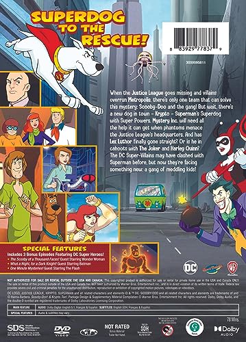 When the Justice League goes missing and villains overrun Metropolis, there’s only one team that can solve this mystery: Scooby-Doo and the gang! But wait, there’s a new dog in town – Krypto – Superman’s Superdog with Super Powers. Mystery Inc. will need all the help it can get when phantoms menace the Justice League’s headquarters. And has Lex Luthor finally gone straight? Or is he in cahoots with The Joker and Harley Quinn? The DC Super-Villains may have clashed with Superman before, but now they’re facing something new: a gang of meddling kids!