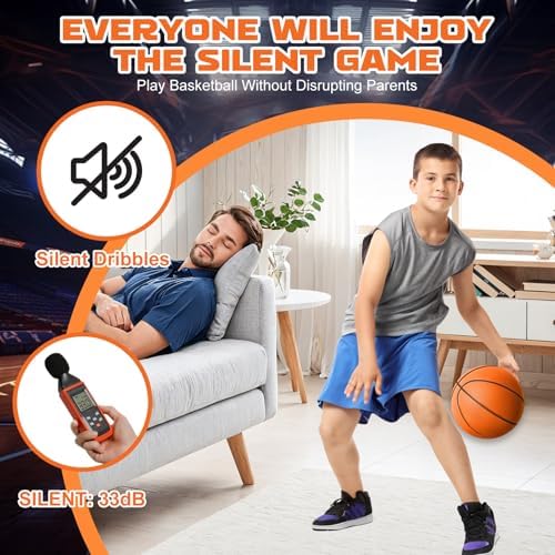 Designed for Indoor Basketball Training: This quiet basketball is carefully designed to minimize noise, lets you practice dribbling quietly at only 33 decibels. The soft foam material will not damage floors and furniture, allowing you to play safely indoors without disturbing anyone