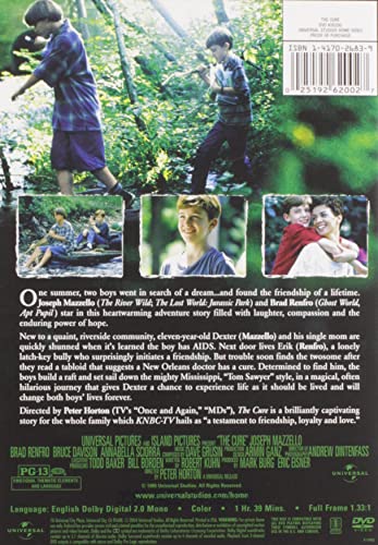 One summer, two boys went in search of a dream…and found the friendship of a lifetime. Joseph Mazzello (The River Wild; The Lost World: Jurassic Park) and Brad Renfro (Ghost World, Apt Pupil) star in this heartwarming adventure story filled with laughter, compassion and the enduring power of hope.New to a quaint, riverside community, eleven-year-old Dexter (Mazzello) and his single mom are quickly shunned when it’s learned the boy has AIDS. Next door lives Erik (Renfro), a lonely latch-key bully who surprisingly initiates a friendship. But trouble soon finds the twosome after they read a tabloid that suggests a New Orleans doctor has a cure. Determined to find him, the boys build a raft and set sail down the mighty Mississippi, “Tom Sawyer” style, in a magical, often hilarious journey that gives Dexter a chance to experience life as it should be lived and will change both boys’ lives forever.Directed by Peter Horton (TV’s “Once and Again,” “MDs”), The Cure is a brilliantly captivating story for the whole family which KNBC-TV hails as “a testament to friendship, loyalty and love.”